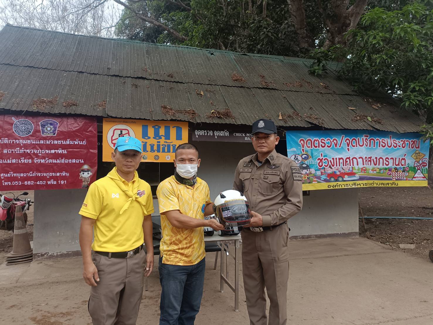 โดยการอำนวยการของ สว.สภ.เสาหิน งานจราจร สภ.เสาหิน ได้ดำเนินอำนวยความสะดวกให้ประชาชน และแจกหมวกกันน็อ