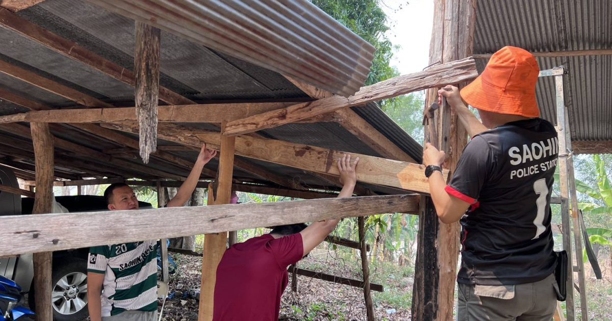 วันที่ 22 มีนาคม 2568 นำโดย พ.ต.ท.นฤมิต สุขแสง สว.สภ.เสาหิน นำข้าราชการตำรวจร่วมกันซ่อมแซมโรงรถ เพื่อให้ใช้งานได้ต่อไป