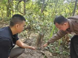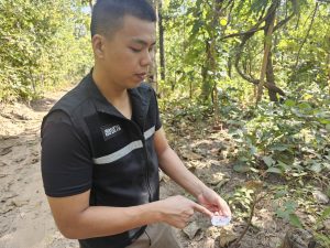 ตำแหน่งที่พบของกลาง บริเวณเส้นทางเดินชายป่าท้ายหมู่บ้านเสาหิน หมู่ 1 ต.เสาหิน อ.แม่สะเรียง
