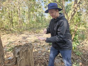 ตำแหน่งที่พบของกลาง  บริเวณเส้นทางเดินชายป่าท้ายหมู่บ้านแม่สอง หมู่ 3 ต.เสาหิน อ.แม่สะเรียง