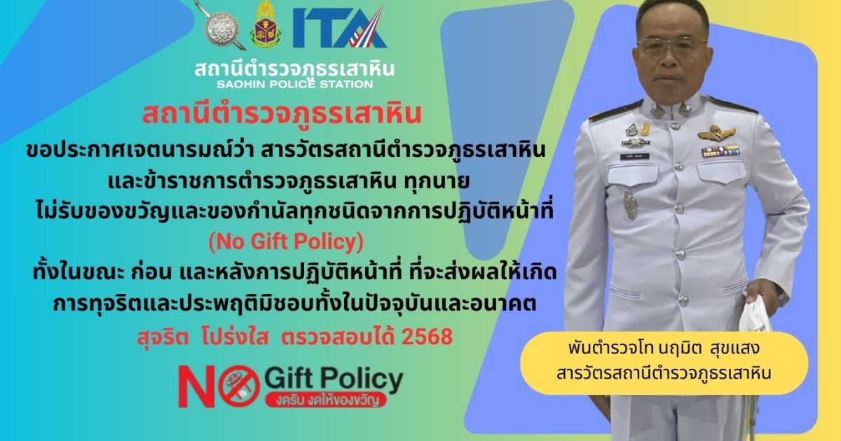 สถานีตำรวจภูธรเสาหิน ประกาศนโยบาย No Gift Policy