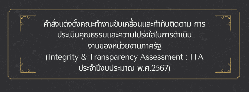 Home » มาตรฐาน ITA » ตัวชี้วัดที่ 10 การป้องกันการทุจริต » ตัวชี้วัดย่อยที่ 10.2 มาตราการภายในเพื่อส่งเสริมคุณธรรมและความโปร่งใส » มาตรการภายในเพื่อส่งเสริมคุณธรรมและความโปร่งใส » O24 มาตรการการยกระดับคุณธรรมและความโปร่งใสภายในหน่วยงาน