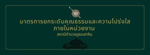 Home » มาตรฐาน ITA » ตัวชี้วัดที่ 10 การป้องกันการทุจริต » ตัวชี้วัดย่อยที่ 10.2 มาตราการภายในเพื่อส่งเสริมคุณธรรมและความโปร่งใส » มาตรการภายในเพื่อส่งเสริมคุณธรรมและความโปร่งใส » O24 มาตรการการยกระดับคุณธรรมและความโปร่งใสภายในหน่วยงาน 2568